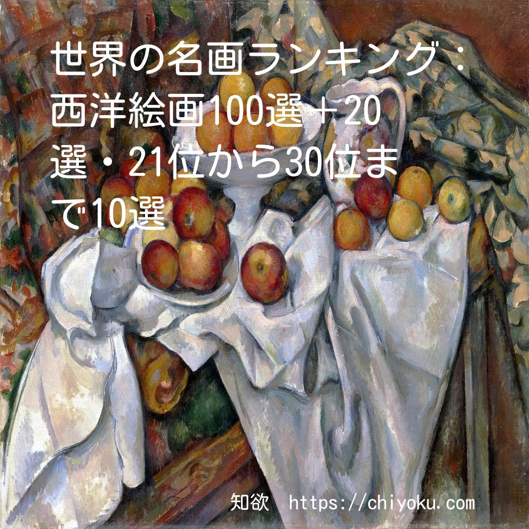 世界の名画ランキング:西洋絵画100選+20選・21位から30位まで10選