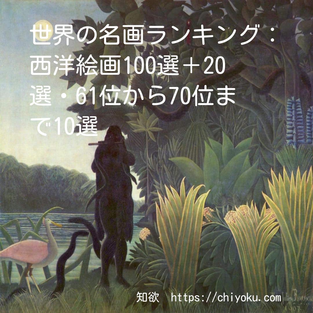 世界の名画ランキング:西洋絵画100選+20選・61位から70位まで10選